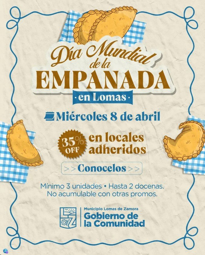 El próximo miércoles 8 de abril, los amantes del buen comer en Temperley tendrán una excusa perfecta para disfrutar sin culpas. Ese día, el Municipio de Lomas de Zamora junto a las Camaras de comercio de Banfield, Lomas y Temperley lanzan una jornada especial por el Dia Mundial del la Empanada con un 35% de descuento en una amplia variedad de pizzerías y casas de empanadas del distrito, y el barrio será uno de los polos con mayor convocatoria. La medida busca incentivar el consumo en comercios de cercanía y se enmarca en una celebración que homenajea a uno de los platos más tradicionales de la gastronomía argentina.