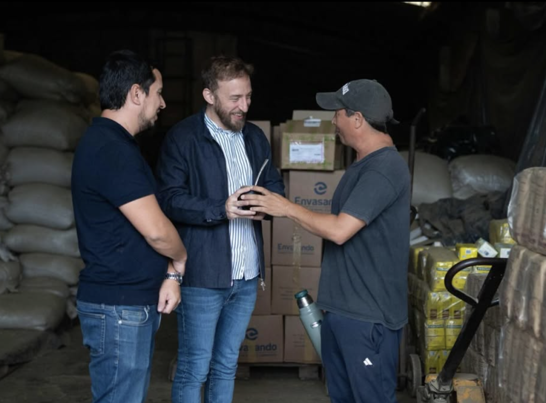 “Junto a Alejandro recorrimos la pyme Molinos Unidos, que desde hace 7 años produce yerba mate con un diferencial enorme: tienen uno de los pocos molinos propios habilitados para elaborar sin TACC en la provincia de Buenos Aires. En la oficina y las recorridas nos acompañan asiduamente así que les traje un mate del Gobierno de la Comunidad en agradecimiento!”, expresó el jefe comunal a través de sus redes sociales.